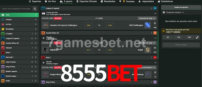 O 8555bet oferece uma grande seleção de opções de apostas em e-sports com probabilidades competitivas